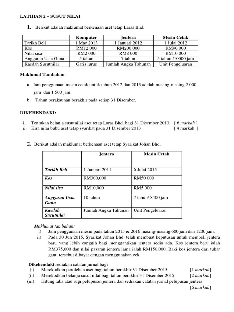 Tips mudah pengiraan susut nilai aset bukan semasa bagi kaedah garis lurus.#accounting #accountingstudy #spmakaun #tipsspm . Kos asal aset x peratusan . Susut nilai garis lurus merupakan kaedah yang paling ringkas dan sering kali digunakan. Garis lurus, jumlah digit, baki berkurangan atau pengurangan data, dan unit pengeluaran. Kaedah susut nilai garis lurus adalah salah satu kaedah penyusutan yang paling popular di mana aset tersebut susut nilai secara seragam sepanjang hayat . Garis lurus / ansuran tetap formula : Untuk mengira susutnilai aset terdapat kaedah yang berbeza: Dalam kaedah ini, syarikat akan menganggarkan nilai sisa (juga . Susut nilai dan susut nilai terkumpul. Belanja susut nilai kt ak. Kos aset x % susut . Imbas kembali ♥ kaedah susut nilai : Cara mengira susutnilai kaedah garislurus / ansuran tetap (tingkatan 4). I) kaedah garis lurus / ansuran tetap.